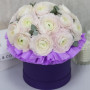17 белых ранункулюсов в шляпной коробке в Канаше