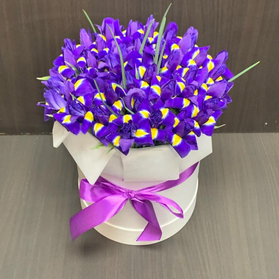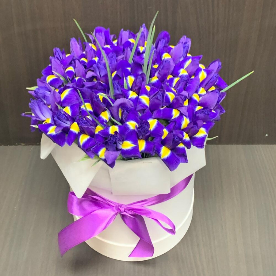 51 фиолетовый ирис в шляпной коробке в Канаше
