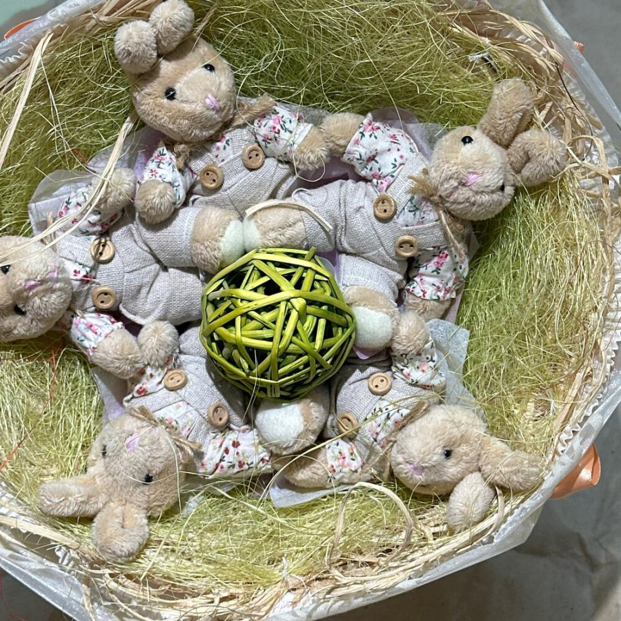 Букет из игрушек зайчат в платье