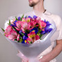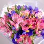 Букет из синих ирисов из розовых альстромерий в Канаше